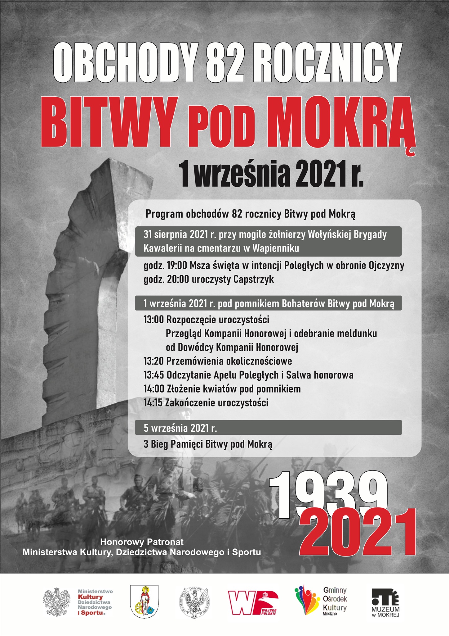 Tegoroczne obchody rozpocznie „Bieg Pamięci Bitwy pod Mokrą”, którego 10 km trasa prowadzić będzie drogami Mokrej - na terenach, gdzie bohaterskie walki toczyli żołnierze Wojska Polskiego.