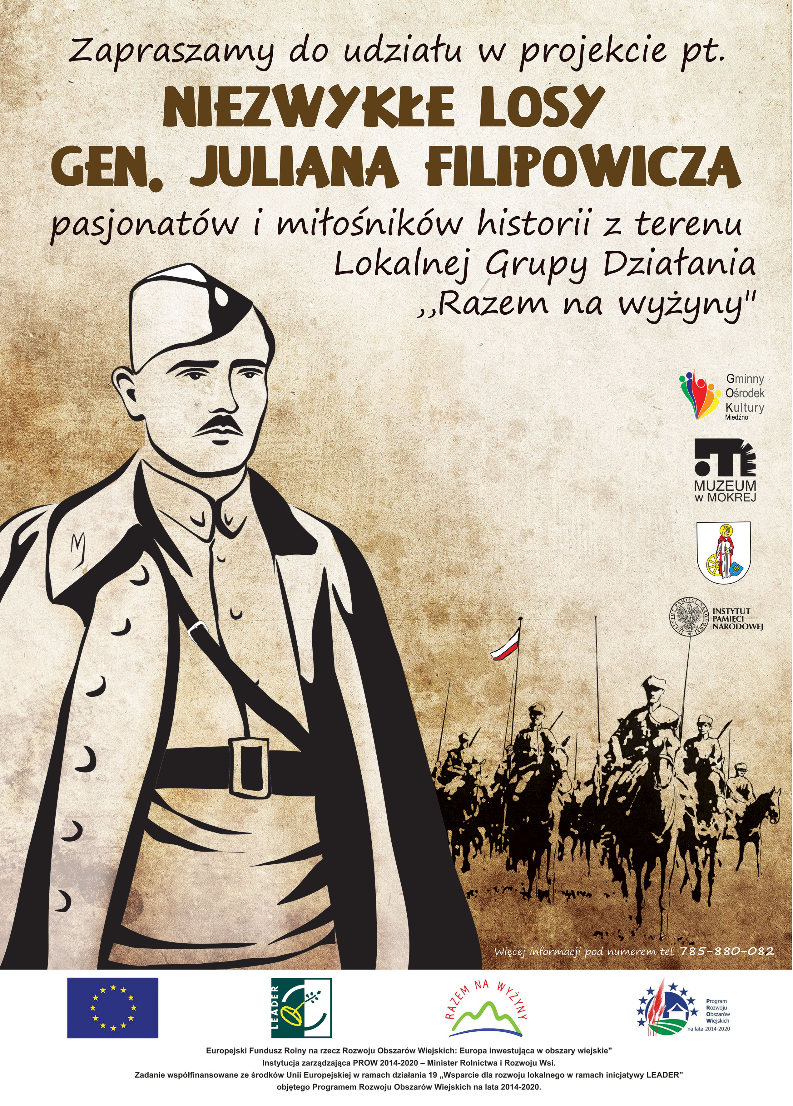 Rozpoczynamy realizację projektu pt: "Niezwykłe losy gen. Juliana Filipowicza", na realizację którego uzyskaliśmy dofinansowanie! Zapraszamy wszystkich pasjonatów historii - zwłaszcza tej, która działa się tak blisko nas, do śledzenia zapowiedzi wydarzeń opatrzonych projektowymi logo. W nadchodzących miesiącach czekać będą wystawy, spotkania, konferencje - zapraszamy już dziś!